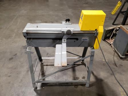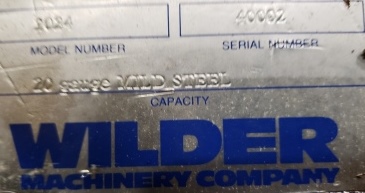 SPECS FROM WILDER - Model: 2024 Cutting Capacity: 20 ga. Max. Slitting Width: 24.25" Min. Slitting Width: 1.25" Feed Direction: Right to Left Slitting SPeed: 90 Ft. Per Min. Horsepower: 1/3 HP Voltage: 115 Volts Phase: 1 PH. Cycle: 60 HZ. Full Load AMPS: 6.4 AMPS Shaft Diameter: 1.25" Blades (STD): 2 PC. (4" X .500" X .750" Side Wall Thickness: .375" Steel Plate Apprx Weight: 280 lbs. CAPACITY: Mild Steel: 20 ga. (.0359") Sheetmetal: 20 ga. (.0396") Stainless: 22 ga. (.0300") Aluminum: .0620" Copper: .0620" Brass: .0620" IMPORTANT CONDITIONS OF THIS QUOTATION: All relevant facts about the above machinery are believed to be accurate, but none are guaranteed. It is the sole responsibility of the buyer to verify all aspects of the machine tool, descriptions, specifications, condition, and suitability of the intended usage. All machines are quoted subject to prior sale, availability, and buyer verification of specifications. Typographical and clerical errors are subject to correction. Thank you for giving us the opportunity to quote your machinery needs.
