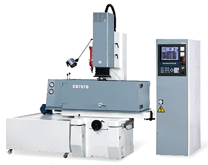 Model: NCF-707B Work Tank: 46 x 27 x 16.7" Work Table: 31.5 x 17.7" Travel (X / Y / Z Ram): 20/16/8/12" Max Quill to Table: 26" Max Electrode: 400 LBS Max Work Load: 1760 LBS Max Output Current: 60 or 90 Amp Max Stock Removal: 600 mm3/min Best Surface Finish: Ra 0.33 mmRa Best Electrode Wear: < 0.25% Dielectric Tank: 850 L (225 Gal.) Net Weight: 4180 LBS FEATURES: * 60 or 90 Amp power supply capacity * Fully ribbed solid casting base for maximum rigidity and stability * Built-in 3-axis DRO system integrates with machine control for positioning and auto z-depth setting in for simple programming * Maximum 500 programmable steps for setting all machining parameters enables complete start to finish auto cycle for even the most complex jobs * MOSFET electric discharge circuit design is ideal for fast burning, reduced electrode wear, and uniform surface finish applications * Precision linear ways with oil immersed ball screw and DC Servo motor on Z-axis * Power rapid Ram up/down traverse motor * Centralized one-shot lubrication system provides lubrication to all points