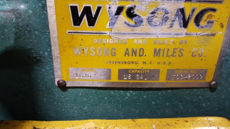 16 Ga. x 36", WYSONG STOMP SHEAR, MODEL#1636, USED